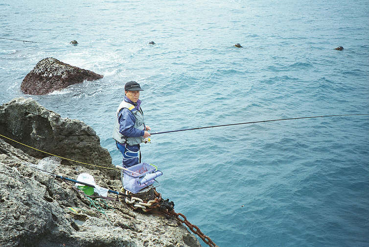 サラシもなく、前に大敷網の鎖もある。こんな磯で大釣りするなんて、すごい。