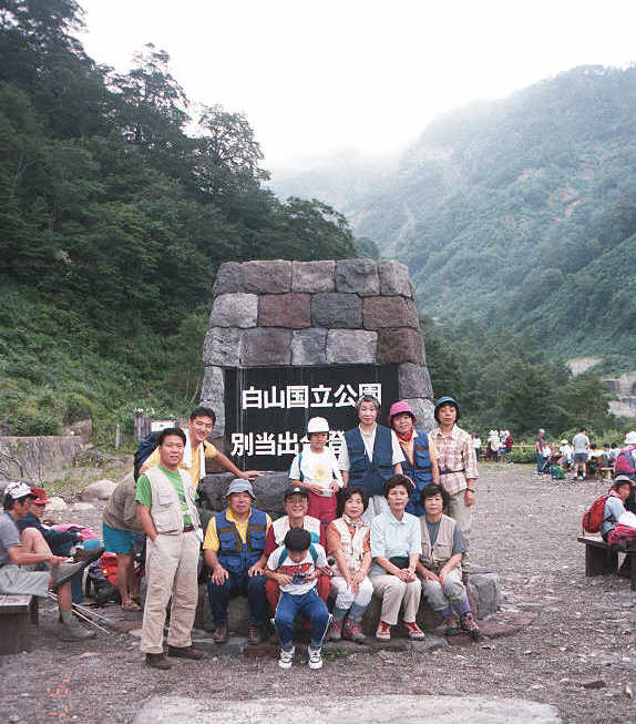 白山の登り口です。全員で記念撮影をしました。(私はカメラマンです。)