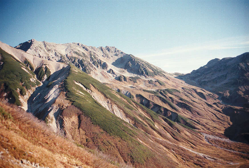 雷鳥沢から大汝山、雄山、一の越を望む。