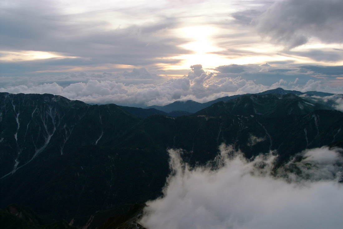夕方、あまりに景色が素晴らしかったので小屋の外に出て、3000M級の山々を夕日が沈むまで眺めていた。