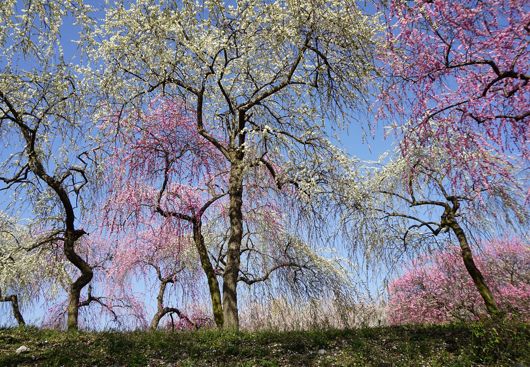 春の山のシダレ梅、予想以上に美しかった。 |